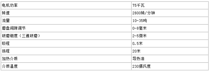高速剪切均化磨技術(shù)參數(shù)(20T/小時(shí))